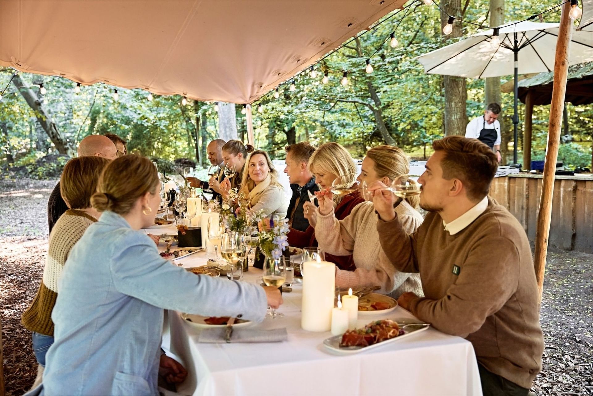 End your meeting with a dinner set in the tranquility of the forest, where nature creates the perfect setting. Gather around long communal tables and enjoy the experience as your private chef prepares the meal over an open fire.